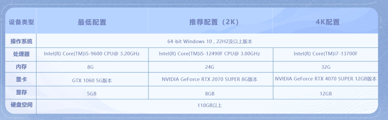 推荐配置(2K)
