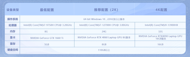 笔记本配置要求