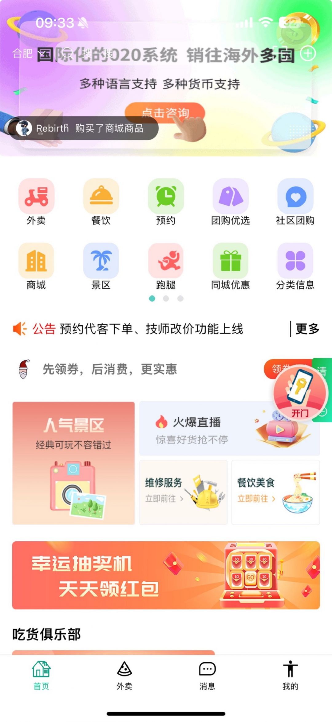 一款创新,稳定的商业模式型平台生活通app,涵盖快店、团购、餐饮、服务快派、预约、跑腿等业务需求。