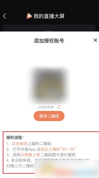 3、在跳出的弹框内,保存扫描二维码进行授权即可。