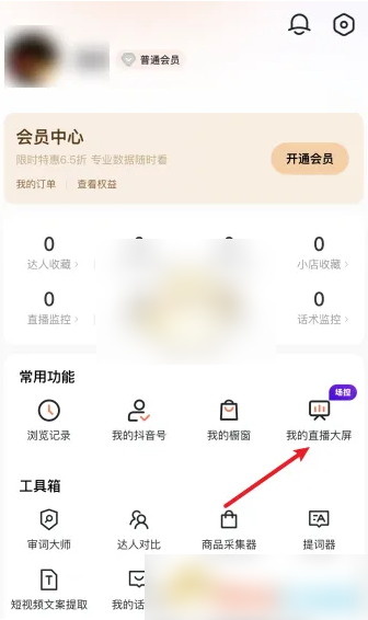 1、进入“我的”,在常用功能下,选择“我的直播大屏”。
