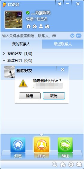 ②删除好友:如果您要删除某个好友,先找到这个好友所在的分组,右击这个好友→在弹出菜单项里面选择“删除好友”→系统弹出删除好友小弹窗→点击”确定“即可。