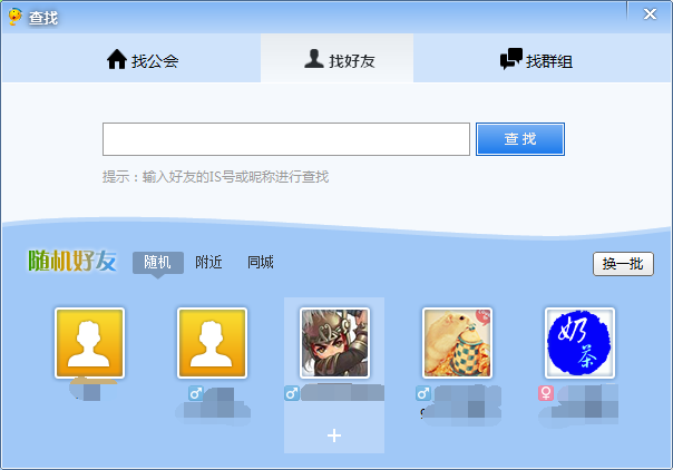 同时可以根据随机好友查找好友进行添加:找好友下方提供随机好友选项“随机”“附近”“同城”。