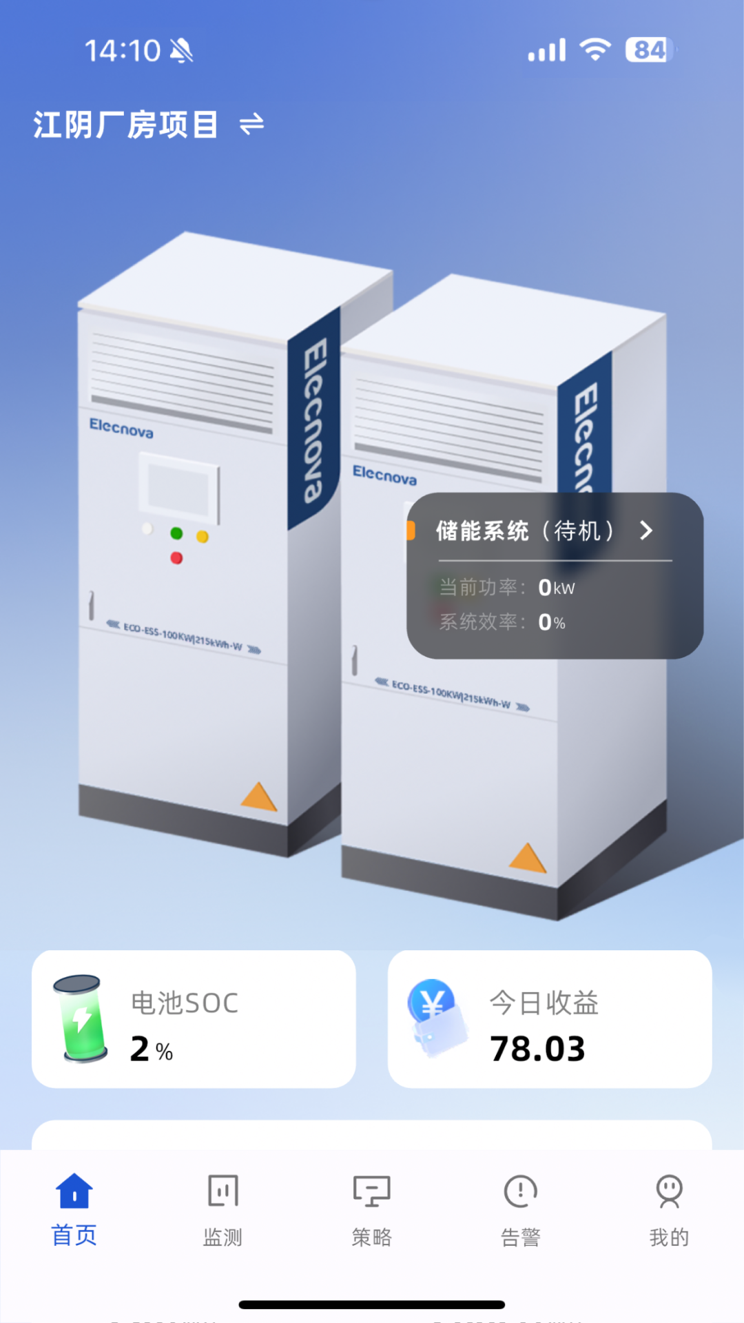 首页:监测储能电池SOC、系统收益、充放电量、充放电功率等电站详情,展示储能系统、光伏系统整体监测数据和运行曲线;