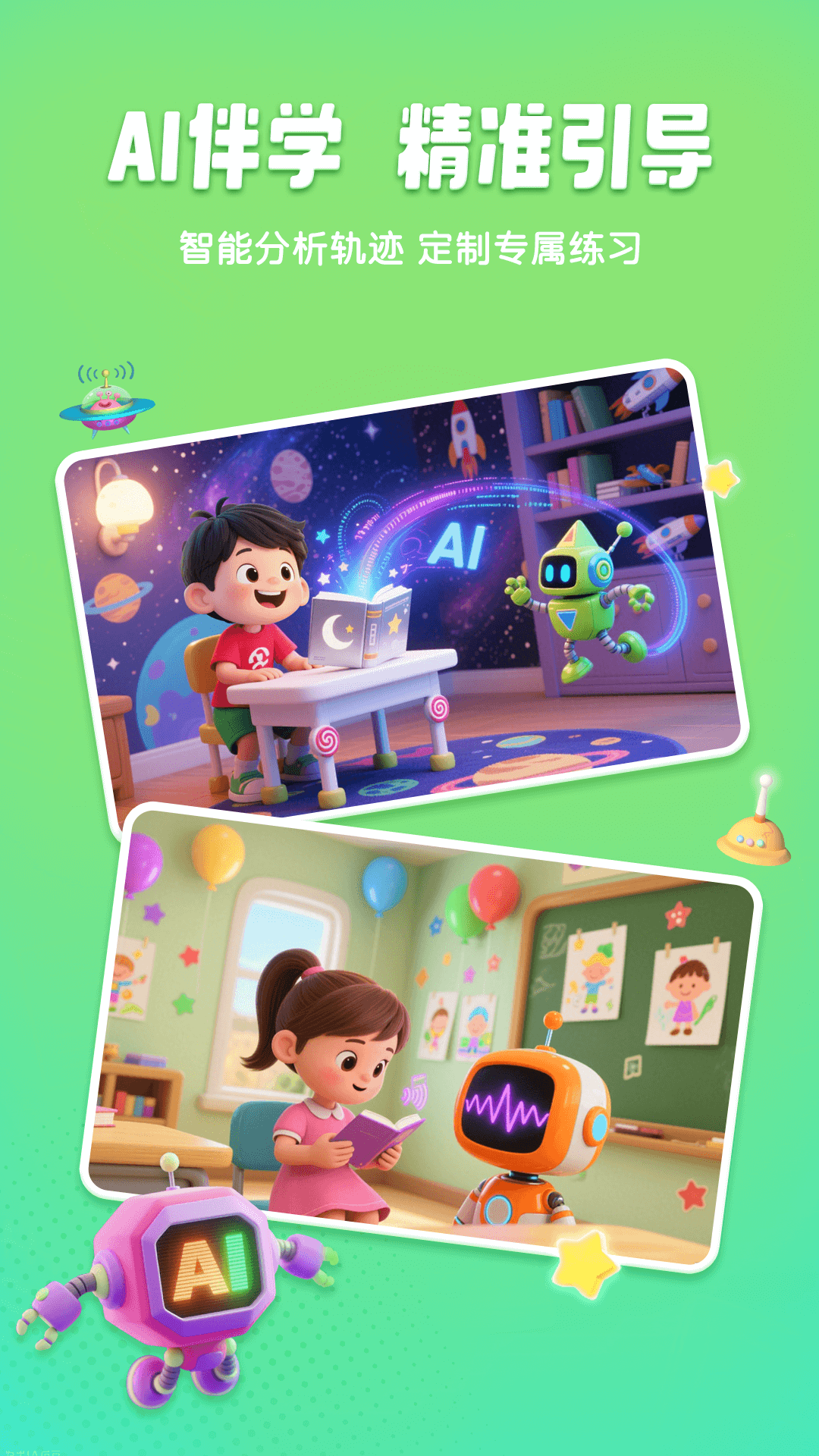 呱呱识字采用AI技术,精选小学人教版一、二、三年级语文课本2100个高频字,8000个常用词,2100个基础句,严格遵循语文识字表识字顺序,通过认、学、读、写、测等环节,让孩子牢固掌握汉字音形义;通过智能伴学,趣味激励,让孩子在趣味互动中自主识字,助力孩子快速提升识字量,轻松应对幼升小。