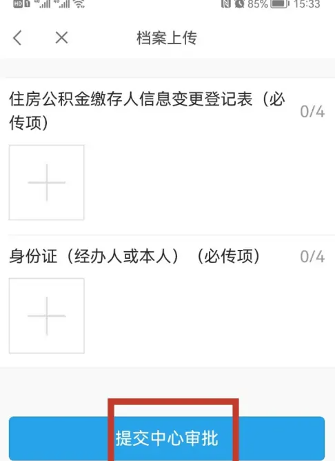 进入档案上传,上传相关信息,点击提交中心审批,审批完成即可变更档案。