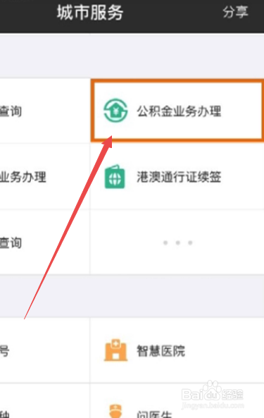 然后,我们进入【城市服务+自己所在城市】的界面,我们找到【办事大厅】,点击【公积金】