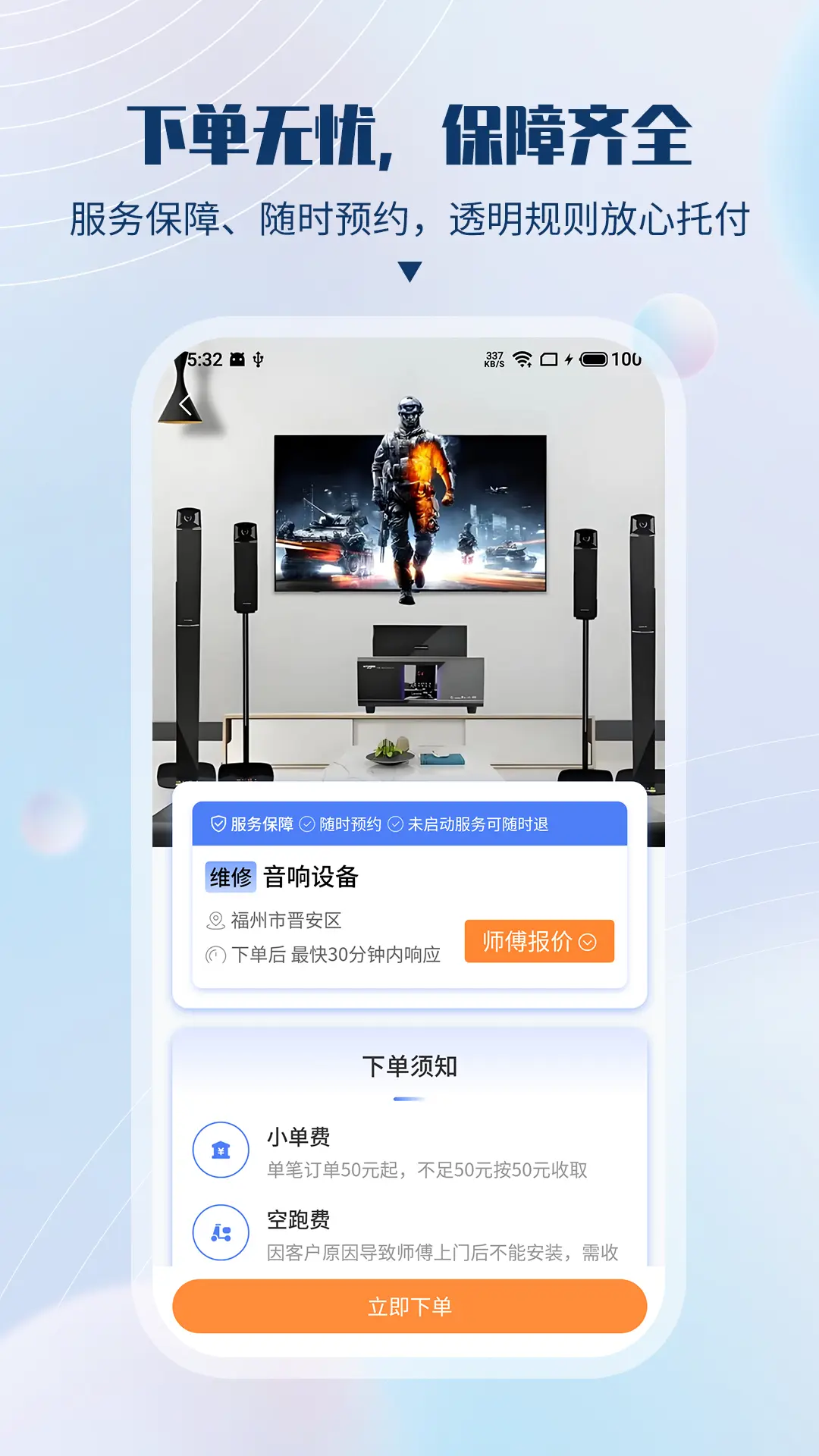 速服家平台提供专业师傅就近上门服务。涵盖安装、维修及家政等多个领域,师傅们拥有丰富经验与专业技能,可迅速精准地诊断各类问题,并给出切实有效的解决方案。确保问题能够得到快速处理与解决,让你的生活更加便捷无忧。