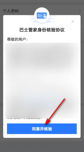 此时会弹出【巴士管家身份核验协议】对话框,接着再点击该对话框中的【同意并核验】功能。