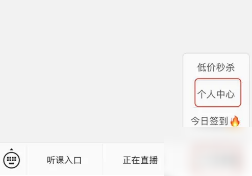 打开荔枝微课微信公众号,点击菜单栏中的【个人中心】,在弹出的子菜单里点击【个人中心】按钮。