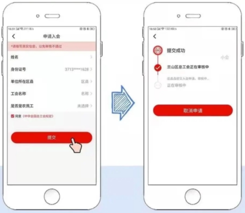 5、提交审核:提交后等待后台审核通过认证,通过后会收到短信提示的哟。(若出现”正在审核中”字样,可联系您所在单位工会批准通过)认证成功后,领取电子会员卡。