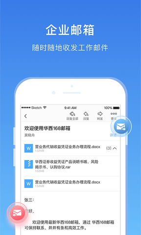 企业邮箱:集成公司邮箱,收发邮件、附件处理,工作沟通 "掌" 握全局