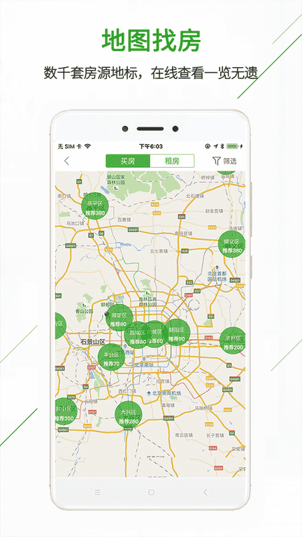 内置地图找房功能,可按区域筛选房源并查看真实图片和设计故事
