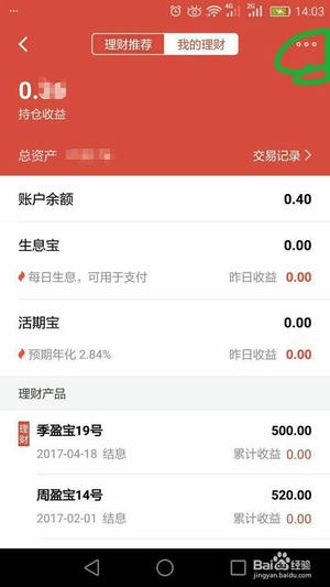 进入我的理财,之后点击我的理财右侧三个点“更多”;进入下一个页面;