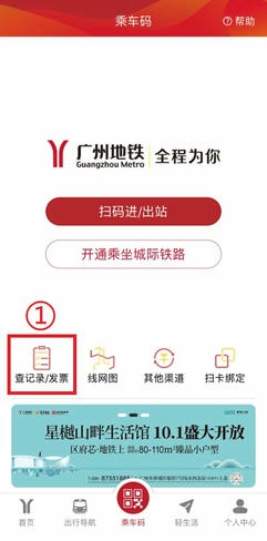 广州地铁app怎么绑定羊城通开发票 广州地铁app开发票教程1、打开广州地铁app,点击首页【查记录/发票】按钮