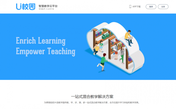 U校园智慧教学云平台(以下简称“U校园”)为高等院校外语教学提供教、学、评、测、研一站式混合教学解决方案,通过生动优质的学习内容、高效便捷的教学工具、无缝对接的多终端支持,全方位提升学习体验和教学效果。平台采用基于数据的设计,应用数据科学和机器学习技术,建立学习模型,持续不断地分析教学活动和内容数据,为学习者提供个性化学习路径,为教师提供基于数据的学情预测和教学干预建议,实现智慧教学,智慧学习。