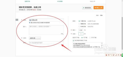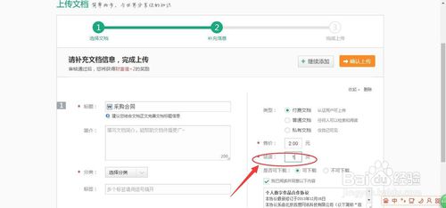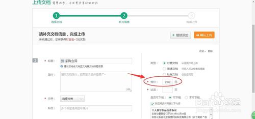 5.设置文档的价格,这个价格是根据你自己的判断,设置价格