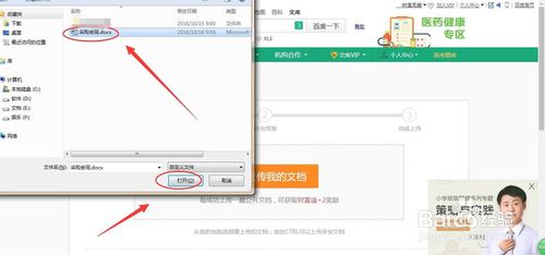 3.选择你将要上传的文档,找到文档的路径选择文档,然后单击“打开”上传文档