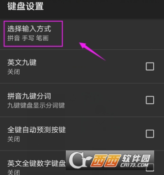 来到了输入法键盘设置,我们选择“选择输入方式”,如图。