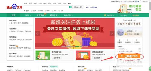 百度文库如何上传付费文档 具体操作步骤1.首先打开百度文库,登录百度账号,在百度文库的右方有个“上传我的文档”图标,单击打开图标