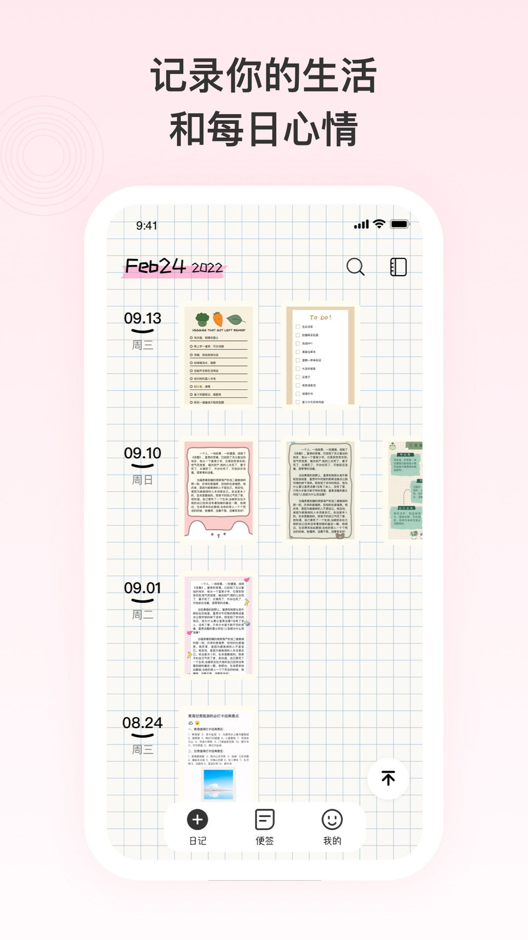 【日记】:创建记事本,记录你每天的心事和碎碎念,用文字和图片描绘今天的故事,标记时间,珍藏每一份美好记忆。随心排版,任意换肤,还有各种可爱贴纸,给你的日记增添更多趣味。