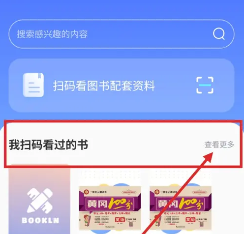 在首页找“我扫码看过的书”,点击旁边“查看更多”按钮,