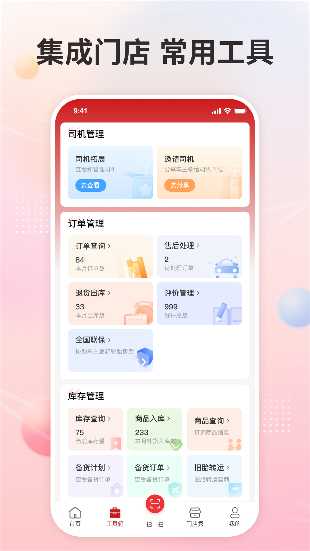 卡友之家门店版为轮胎行业商户提供全面的管理功能,帮助商户高效管理库存、订单、客户信息等,优化门店运营。