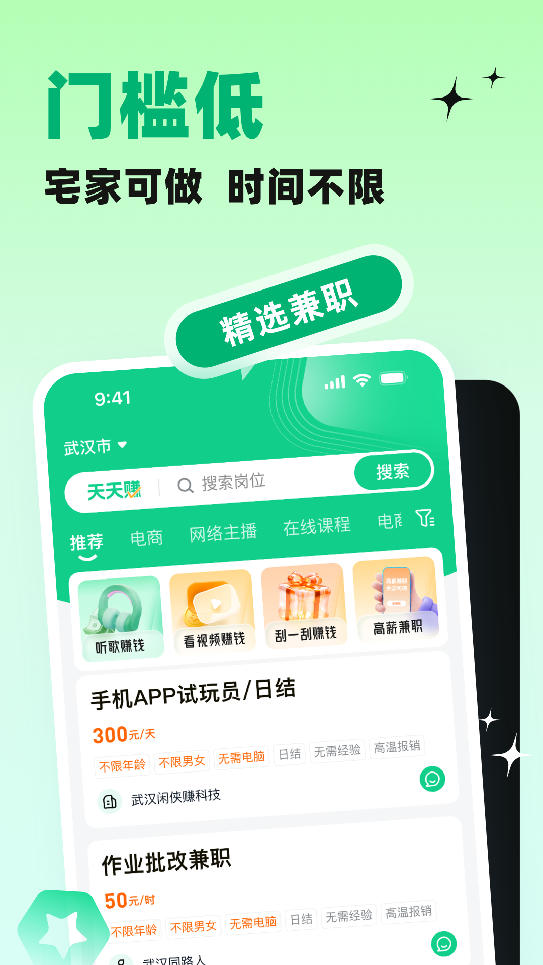天天赚兼职是一款主打真实岗位、安全可靠、上岗快的兼职求职招聘软件。