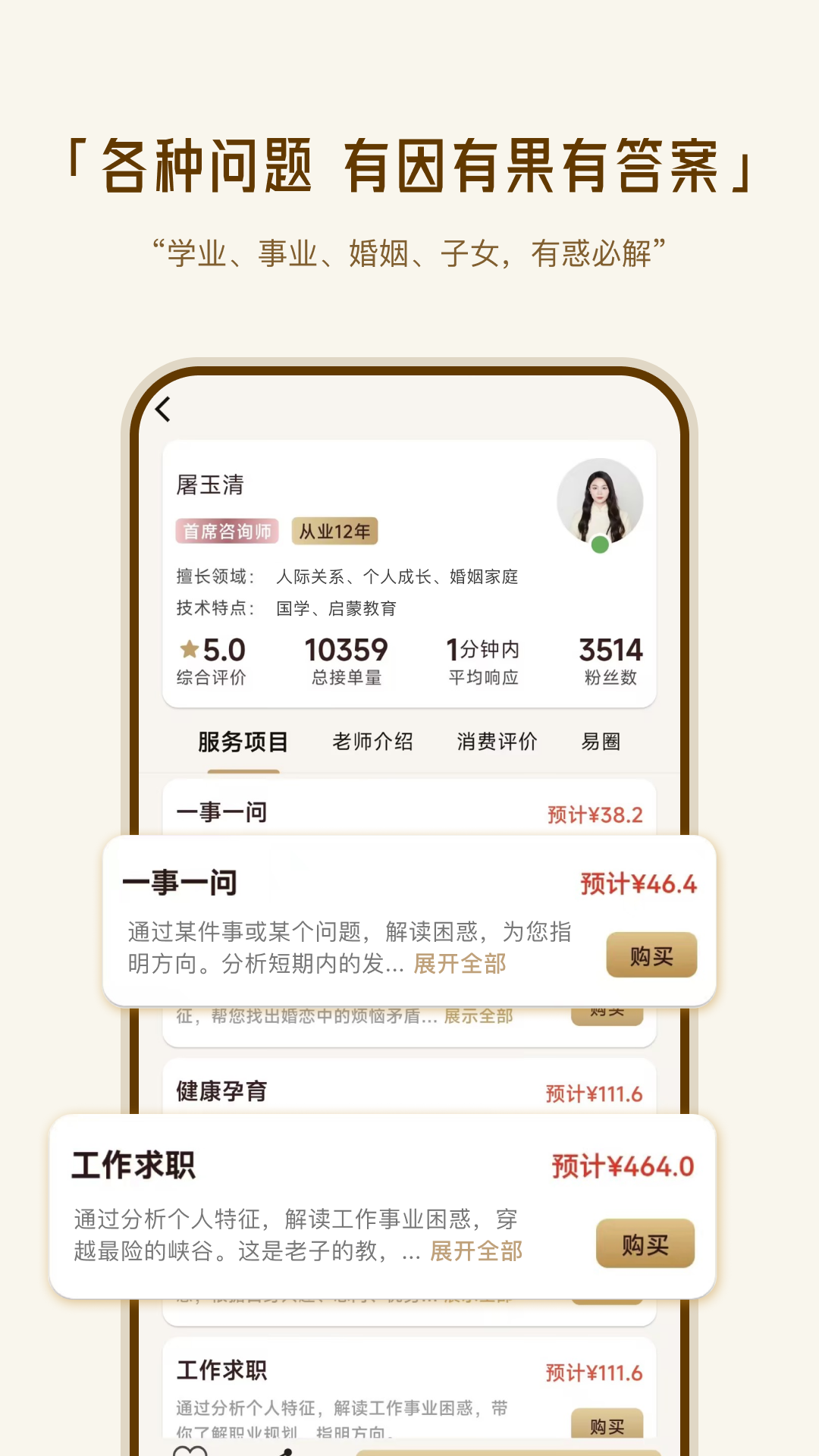 用户可以通过断易堂app获得专业易学师傅的在线指导,解答疑惑并提供具体的实践建议,提升个人易学水平。