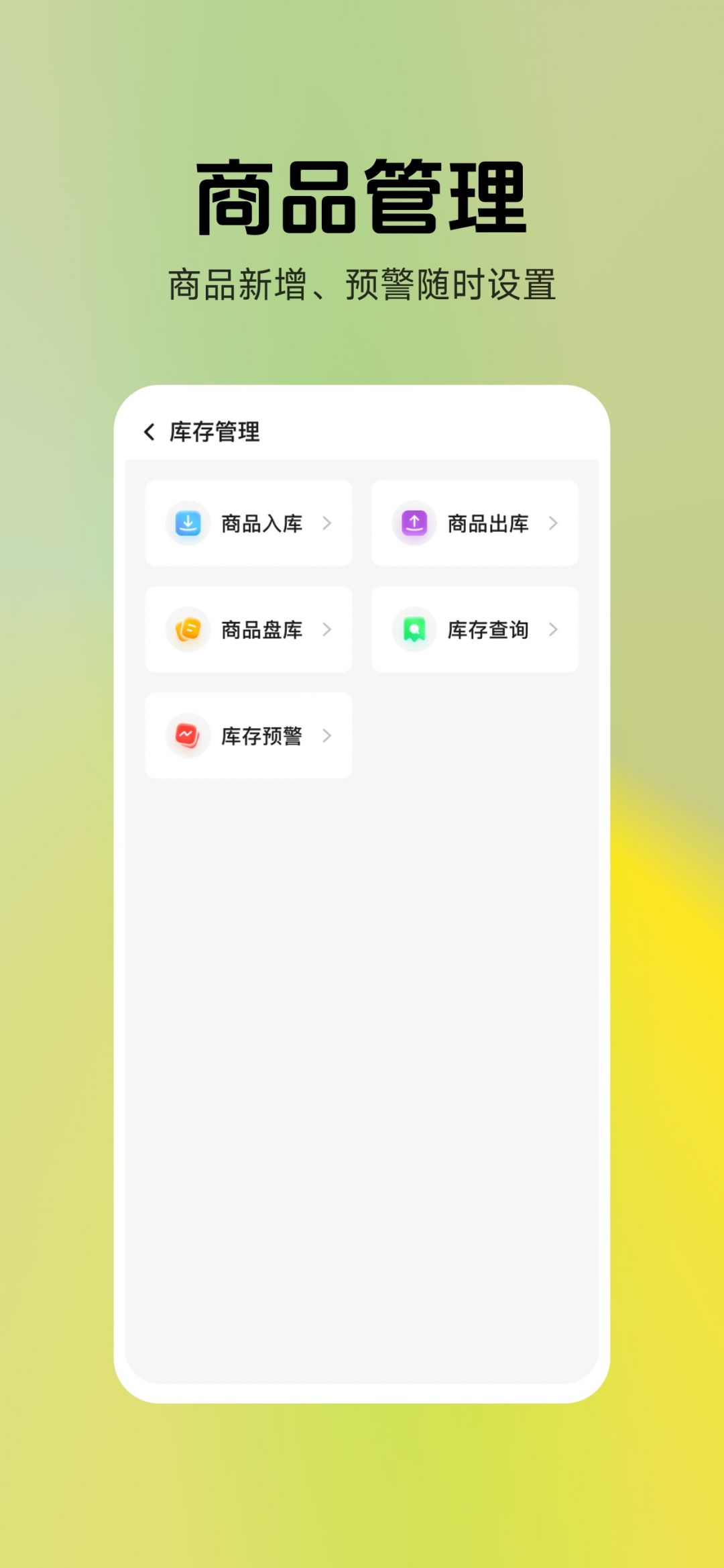 不仅如此,APP 还具备强大的商品管理功能,商品信息编辑、库存盘点一键搞定;出入库管理流程简洁高效,库存变动实时更新;经营报表更是智能生成,多维度数据可视化展示,助您精准洞察经营状况。
