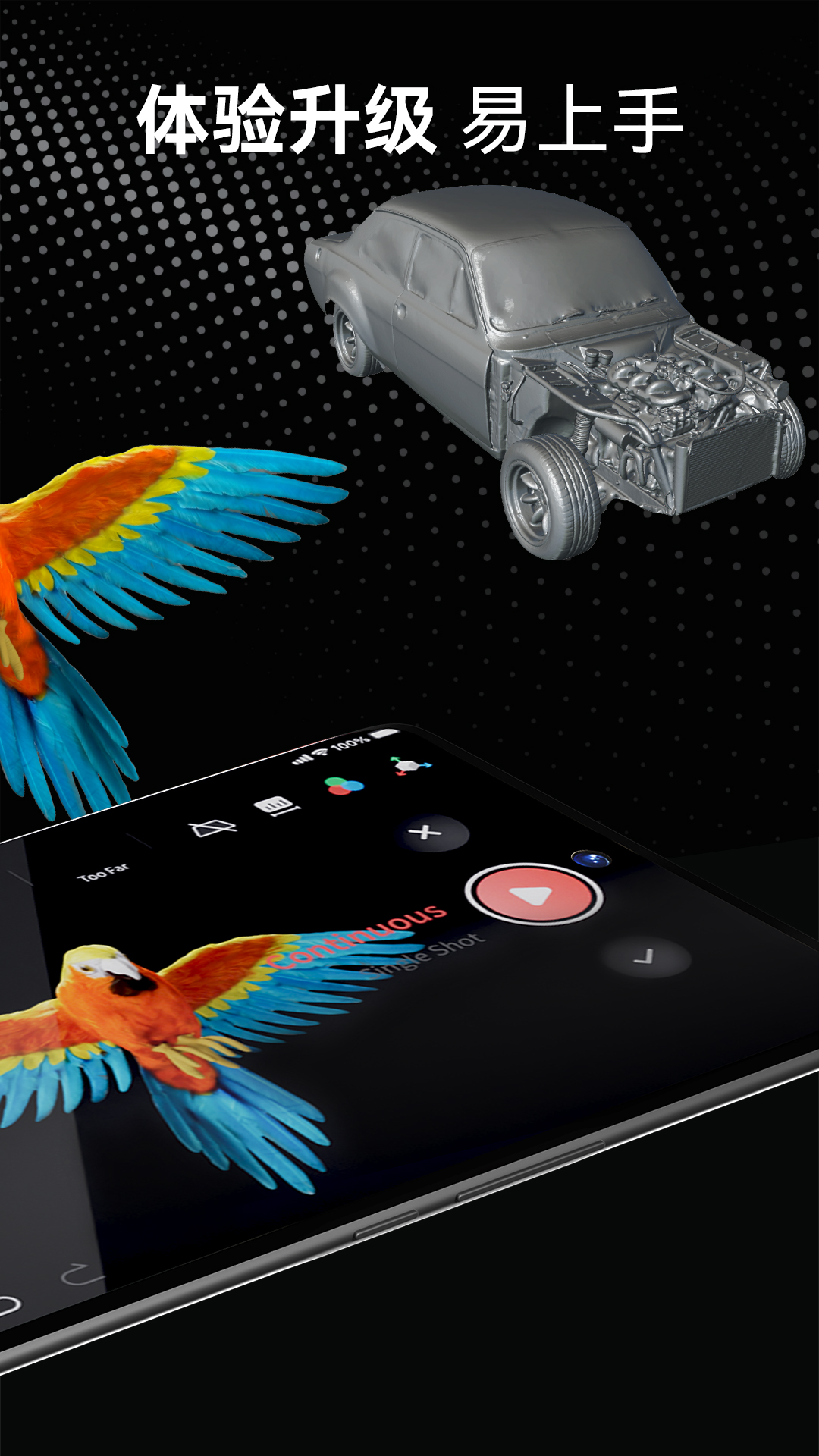 Revo Scan是知象光电 Revopoint 团队自研发的一款免费的 3D 扫描应用程序。该软件可免费下载,您不需要任何复杂的扫描准备工作和专业的扫描技巧,仅连接手机即可快速 3D扫描(安卓手机支持 Wi-Fi )。