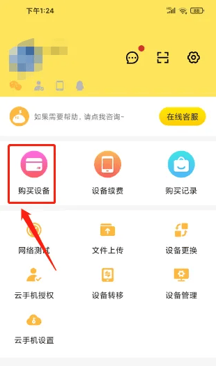 进入我的,点击(购买设备)选项。