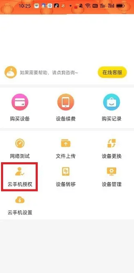 进入我的页面后,点击“云手机授权”。