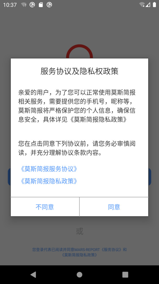 2)更新登录页面《用户协议》和《隐私政策》的弹窗UI和交互,添加不同意的按钮选项