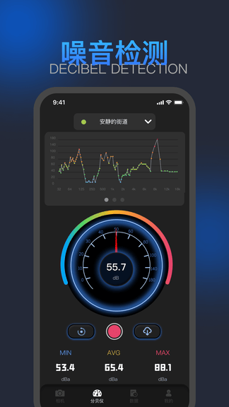 我们的生活周围围绕着各种噪音,噪声污染是影响较大的环境污染之一,较高分贝的噪音甚至会对人的耳膜造成严重的损伤。因此了解日常生活中的声音环境十分必要,快来试一试噪音检测器APP吧!