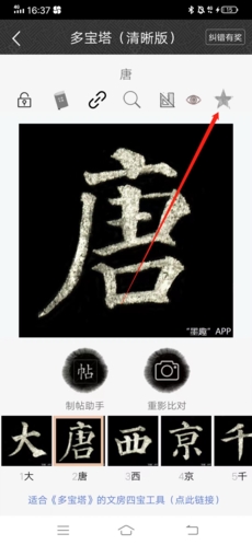 2、重影比对。通过手机扫描,把自己的临字和碑帖上范字重影比对,找出差距,提高水平。