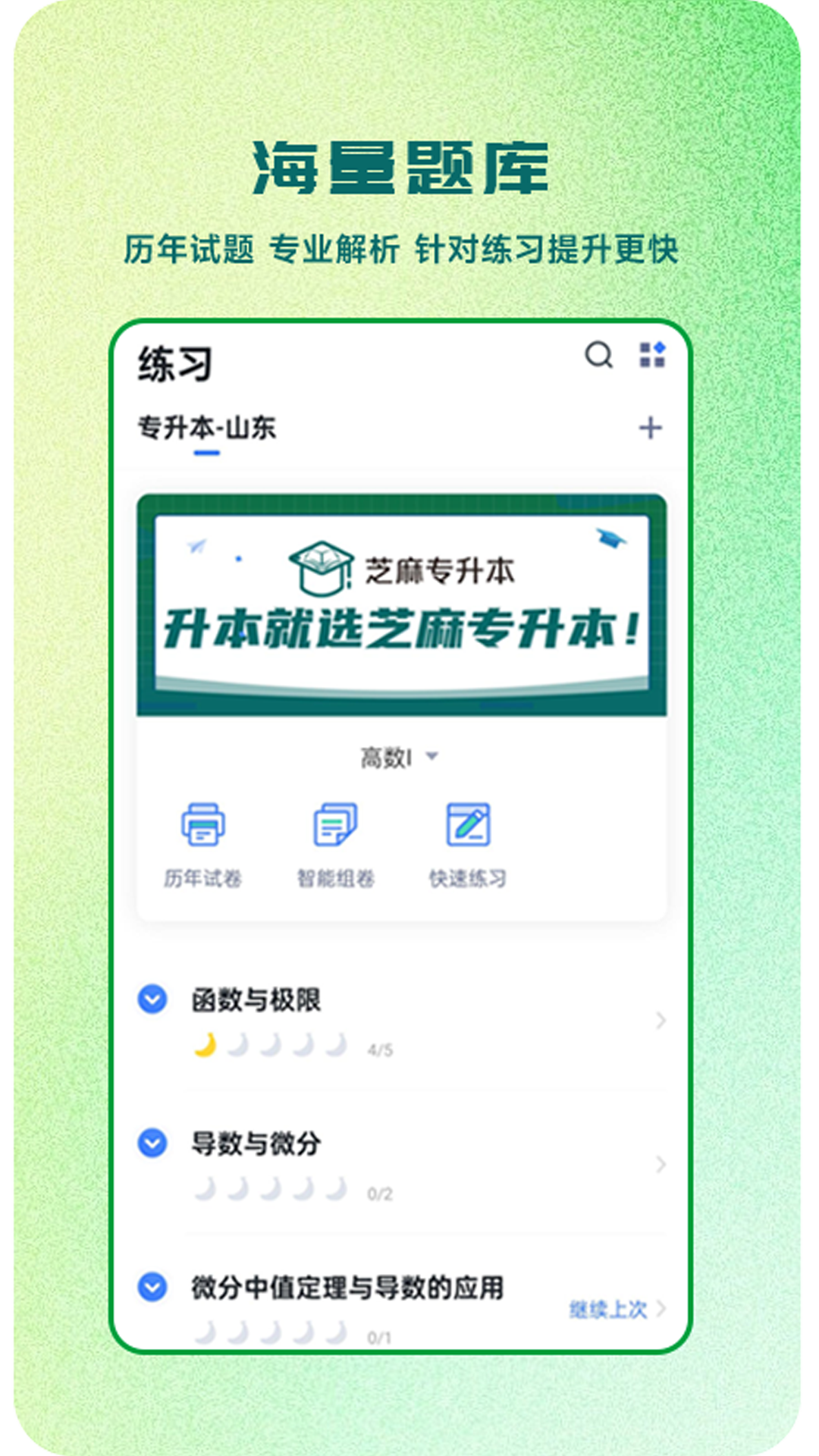 芝麻专升本为用户提供个性化的学习计划和进度管理,根据考生的学习情况自动调整内容安排,帮助考生高效备考。