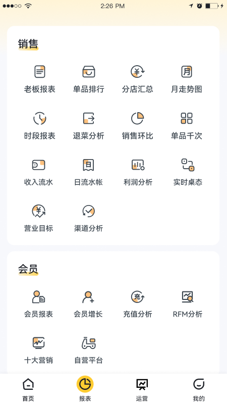 多维BOSS通APP由厦门开创多维软件技术有限公司开发,主要给予老板能够通过手机端实时查看门店的营业额,产品销量,会员消费情况,会员消费和会员充值以及门店活动相关分析、外卖相关分析报表的工具