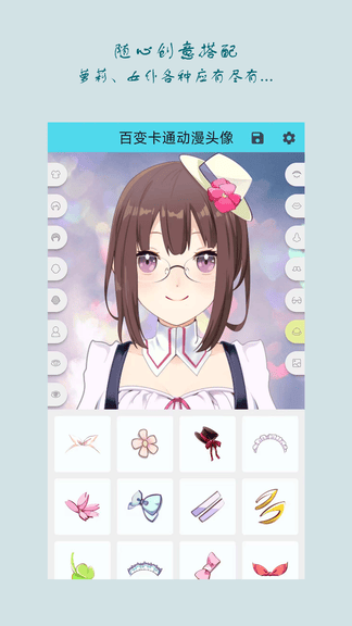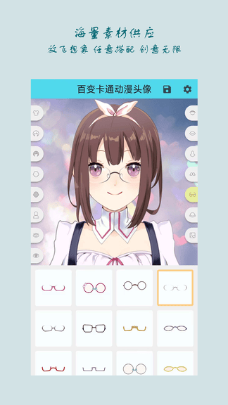 随心制作满意的动漫卡通头像,可以更换衣服、发型、脸型、身体、眼睛、眉毛、嘴巴、鼻子、脸颊、眼镜、发饰、背景及颜色。更换后可以将最后图片保存到相册,随意使用。只要你会想像,就能制作出独特个性的动漫卡通头像出来。心动不如行动,赶快来挑战吧。
