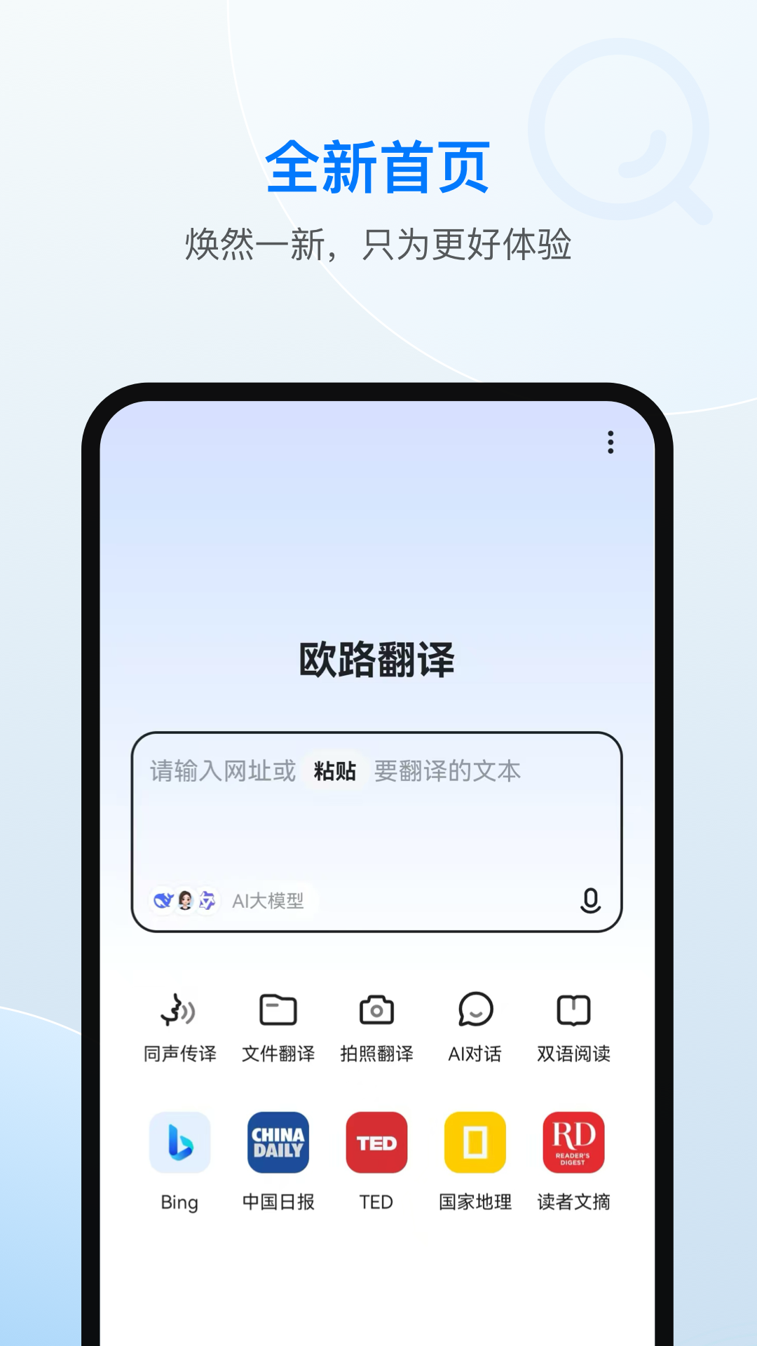 - 首页全新升级,功能布局更清晰,翻译体验更流畅