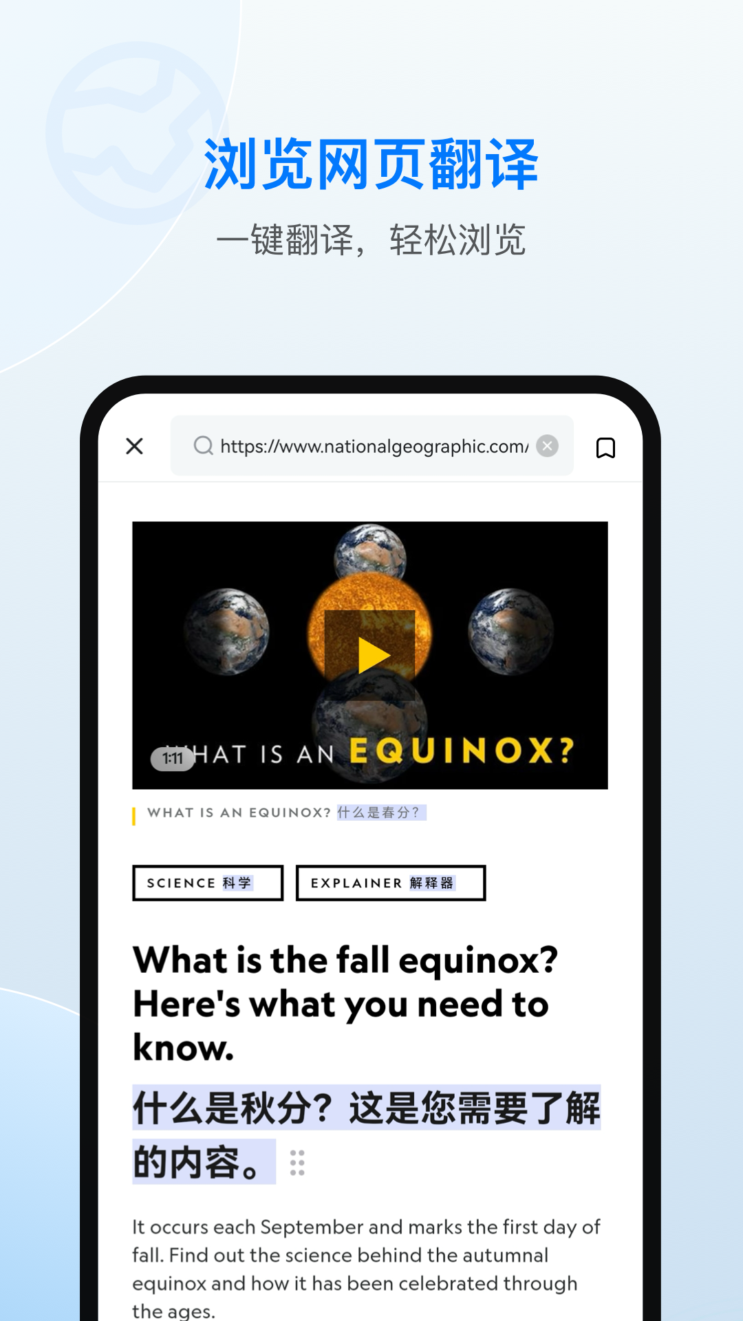 • 只需输入文字,即可在 超过100种语言之间互译• 即时相机翻译:可使用相机将拍摄的文字即时中英互译, 并可在30种以上语言和英文间转换。