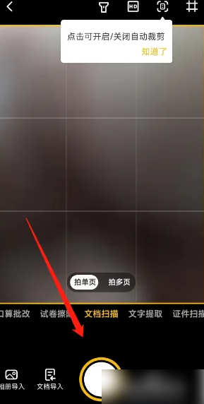 进入相机页面后,对准需要扫描的文件,点击白色按钮;