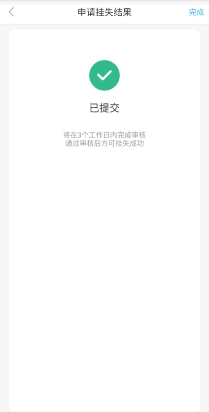 审核将在3个工作日内完成,挂失成功24小时后,卡内余额将直接退还到申请人的app账户内。