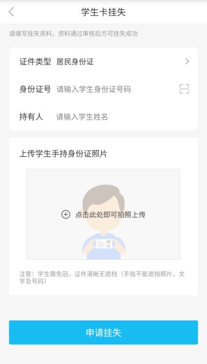 如果记得卡号,直接点击快速挂失。如果不记得卡号,则点击挂失申请,上传相关信息。
