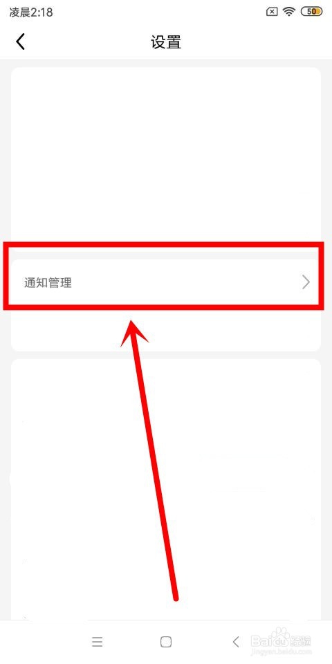 我们再次返回到设置这个页面中来,在该页面中找到通知管理这个选项,点击进入。