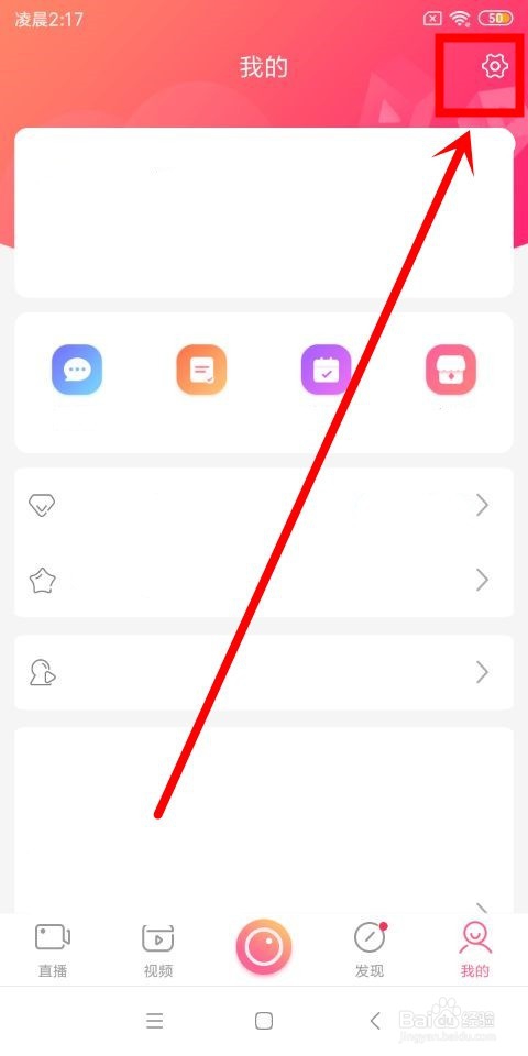 进入到我的这个页面中之后,在该页面的右上角位置我们找到设置这个图标选项,点击进入。