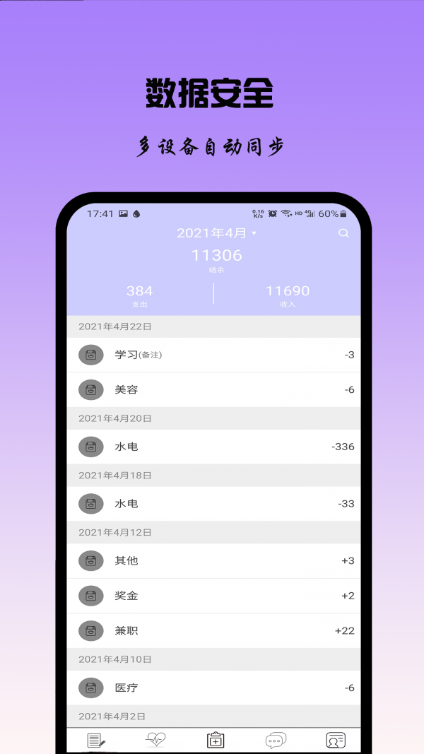 应用支持云端数据备份,确保用户的记账信息安全可靠,即使换设备也能轻松恢复,保障用户的财务数据不丢失。