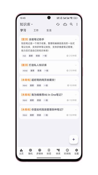 知拾笔记允许用户以文本、图片和音频等多种格式记录笔记,满足不同场景下的信息记录需求,极大提升了使用灵活性。