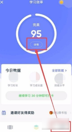 在详情页中,我们可以看到,学习效率包含两个模块,“学习表现”和“学习模块”,如果都能达到完美,就能满分了。