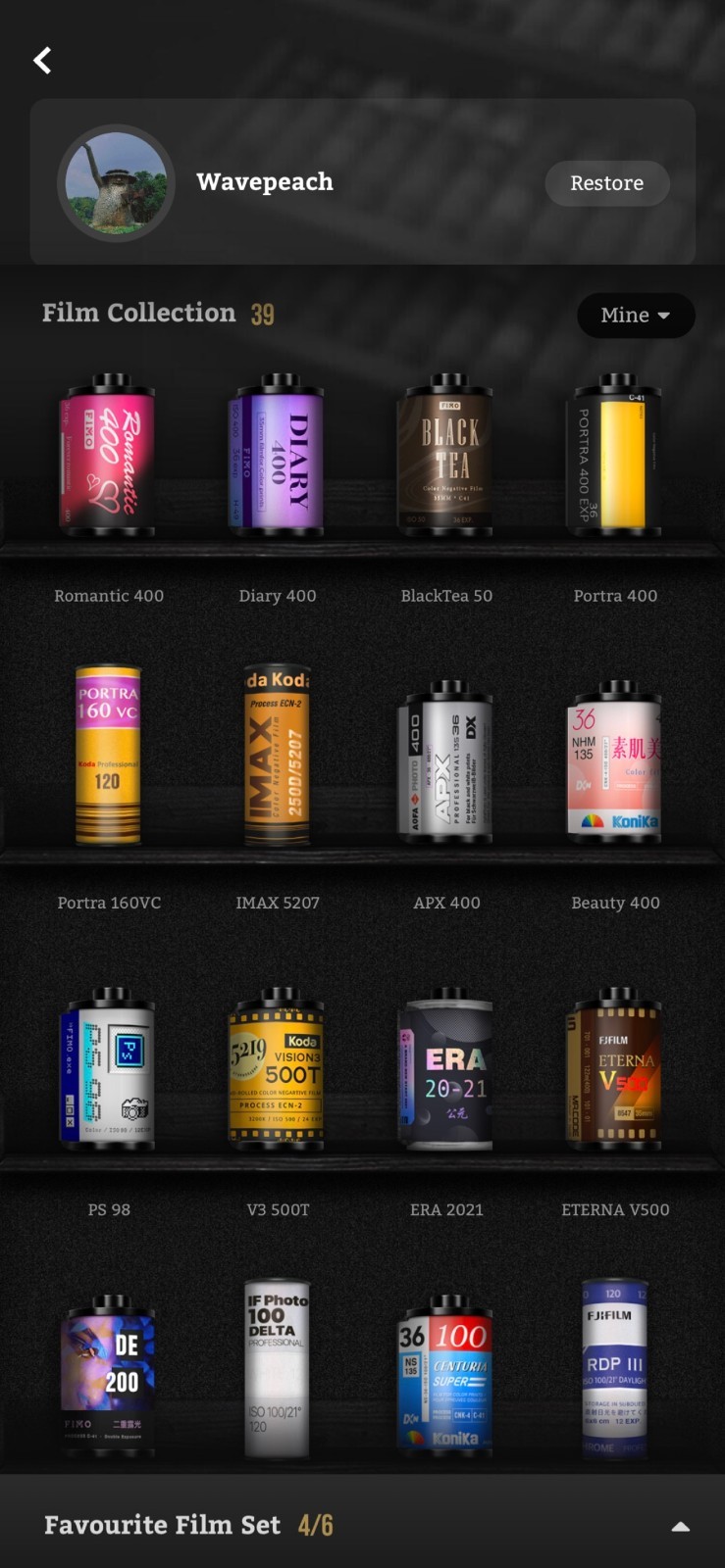 3、然后就会出现各种胶卷分类,点击就能更换。